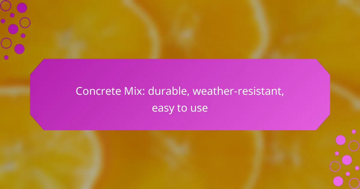Easy-to-use concrete mixes are designed for convenience, requiring minimal preparation and offering consistent results. They typically feature pre-mixed components that enhance durability and weather resistance, making them suitable for various applications.