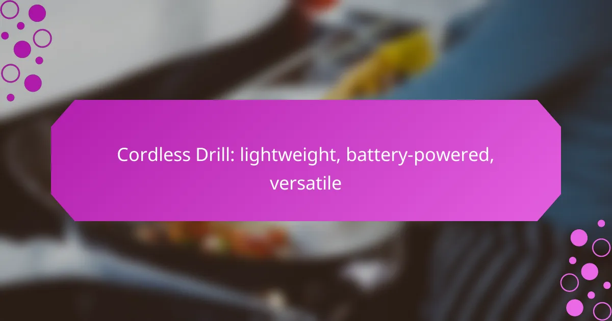 Lightweight cordless drills are an essential tool for both DIY enthusiasts and professionals, offering portability and battery efficiency for a variety of tasks. Popular brands like Makita, DeWalt, and Ryobi provide versatile options that cater to different needs, making them ideal for any project. With the convenience of being battery-powered, these drills eliminate the hassle of cords while still delivering impressive performance.