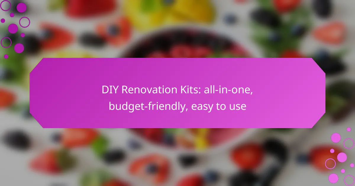 DIY renovation kits are designed for various home improvement projects, allowing homeowners to tackle upgrades without professional help. Common projects include bathroom upgrades and kitchen remodels, each offering a range of options to enhance functionality and aesthetics.