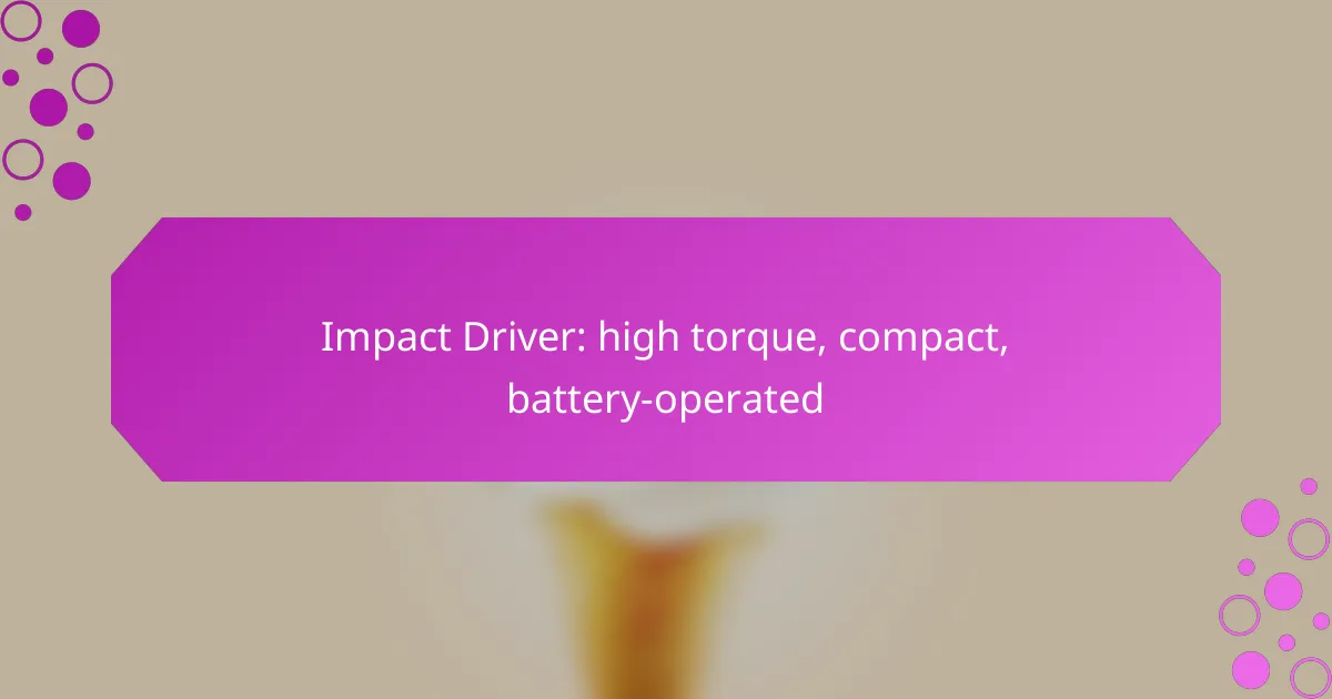 Battery-operated impact drivers offer high torque and compact designs, making them ideal for various tasks. Their portability and convenience allow for use in tight spaces without the hassle of cords or outlets.