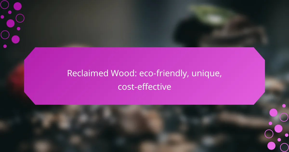 Reclaimed wood is an eco-friendly choice that repurposes existing timber, helping to conserve forests and reduce environmental impact. Its unique characteristics, including distinctive grain patterns and historical significance, make it a popular option for those seeking both aesthetic appeal and sustainability. Additionally, reclaimed wood can be more cost-effective than new lumber, offering long-term value through its durability and lower maintenance costs.